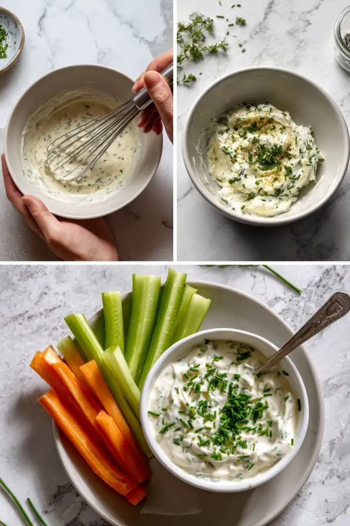 This easy ranch dressing uses sour cream, milk, and a splash of apple cider vinegar to create a creamy, tangy base. Fresh chives, dill, and parsley bring bright flavor, while onion powder and mustard powder add a savory kick—all without high sodium ingredients. It’s ready in just 5 minutes and can be used immediately or stored for up to 3 days.